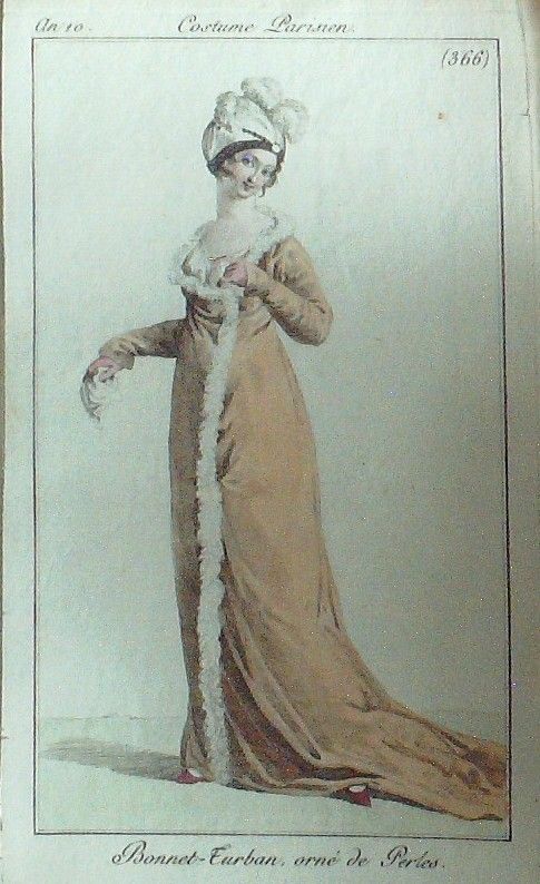 Gravure Mode Costume Parisien 1802 an 10 # 366 (eau forte old Fashion plate