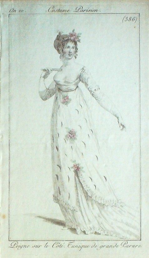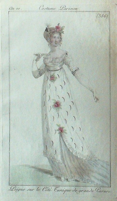 Gravure Mode Costume Parisien 1802 an 10 # 386 (eau forte old Fashion plate