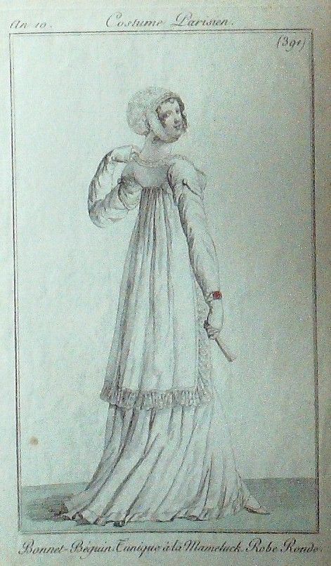 Gravure Mode Costume Parisien 1802 an 10 # 391b (eau forte old Fashion plate