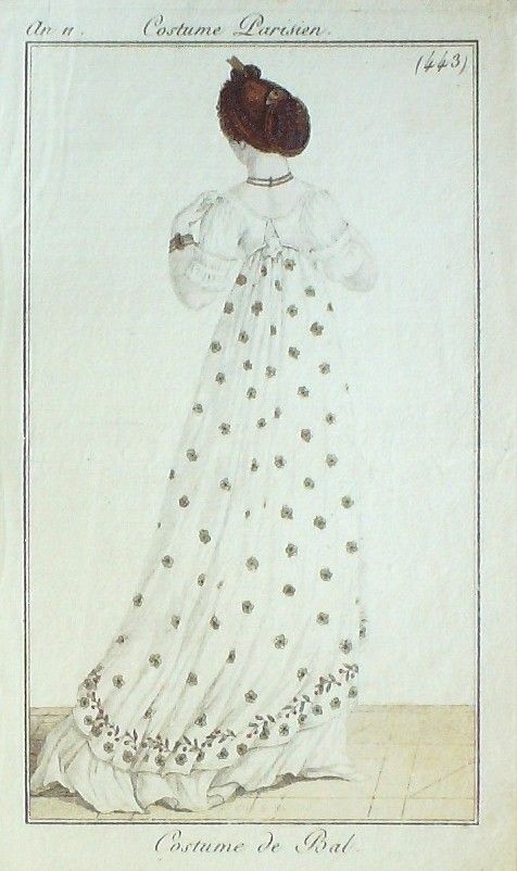 Gravure Mode Costume Parisien 1803 an 11 # 443 (eau forte old Fashion plate