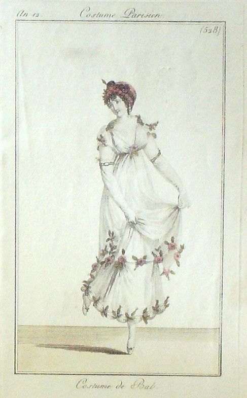 Gravure Mode Costume Parisien 1804 an 12 # 528 (eau forte old Fashion plate
