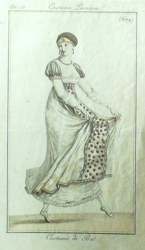 Gravure Mode Costume Parisien 1805 an 13 # 609 (eau forte old Fashion plate