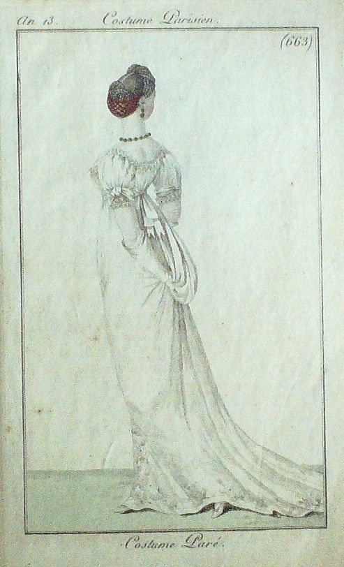 Gravure Mode Costume Parisien 1805 an 13 # 663 (eau forte old Fashion plate