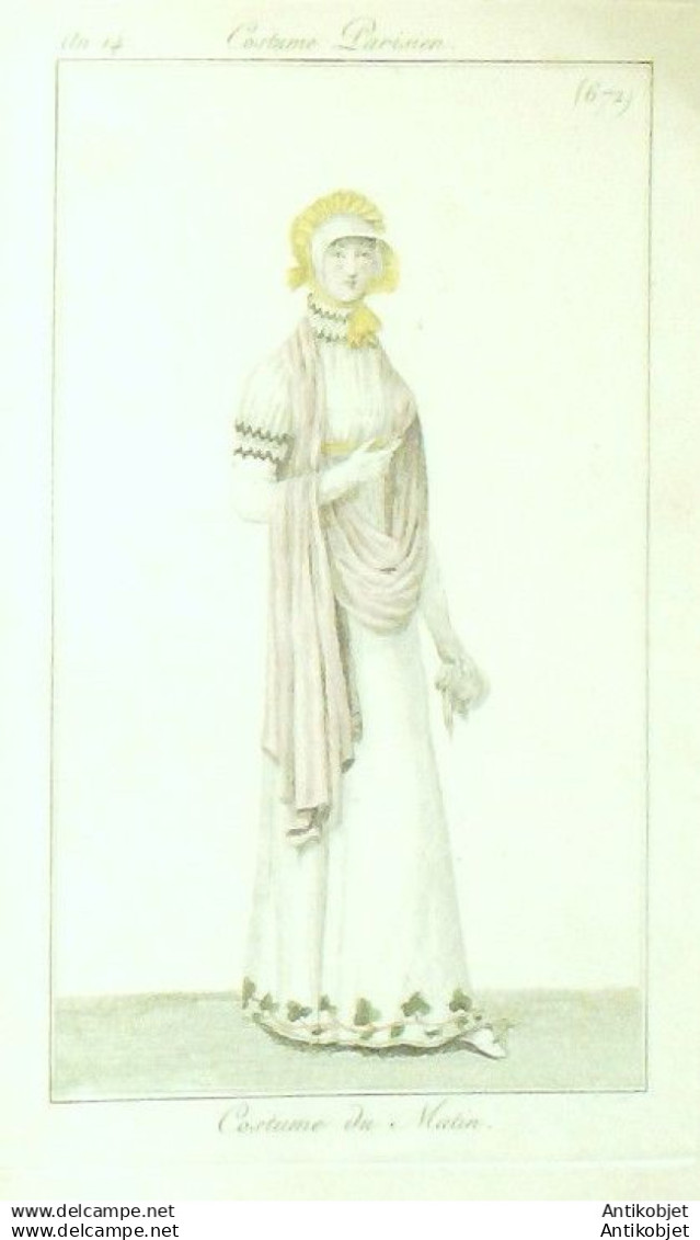 Gravure Mode Costume Parisien 1806 an 14 # 672 (eau forte old Fashion plate