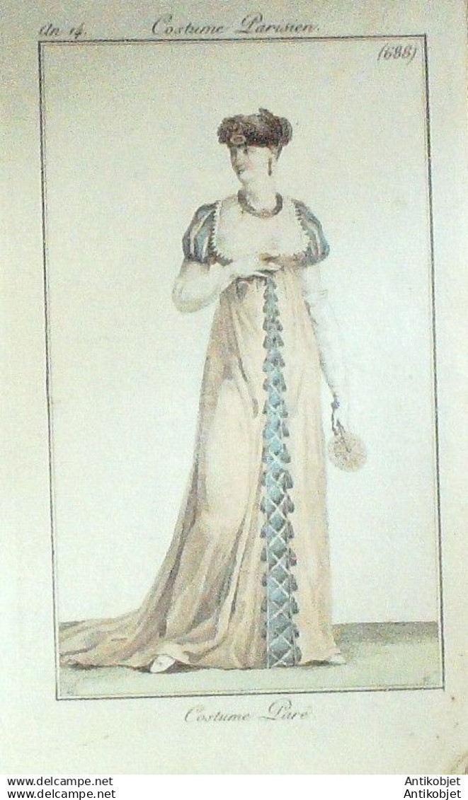 Gravure Mode Costume Parisien 1806 an 14 # 688 (eau forte old Fashion plate