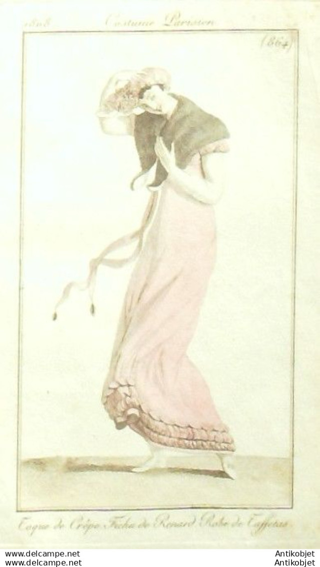 Gravure Mode Costume Parisien 1808 # 864 (eau forte old Fashion plate