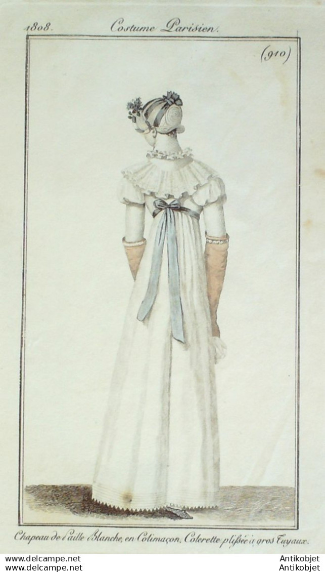 Gravure Mode Costume Parisien 1808 # 910 (eau forte old Fashion plate
