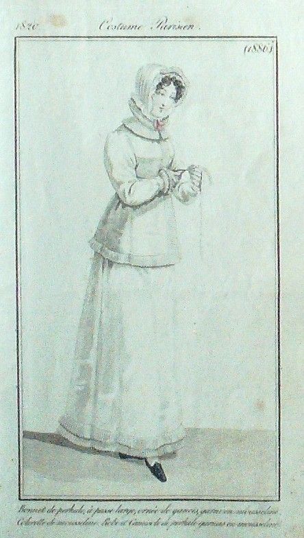 Gravure Mode Costume Parisien 1820 # 1886 (eau forte old Fashion plate