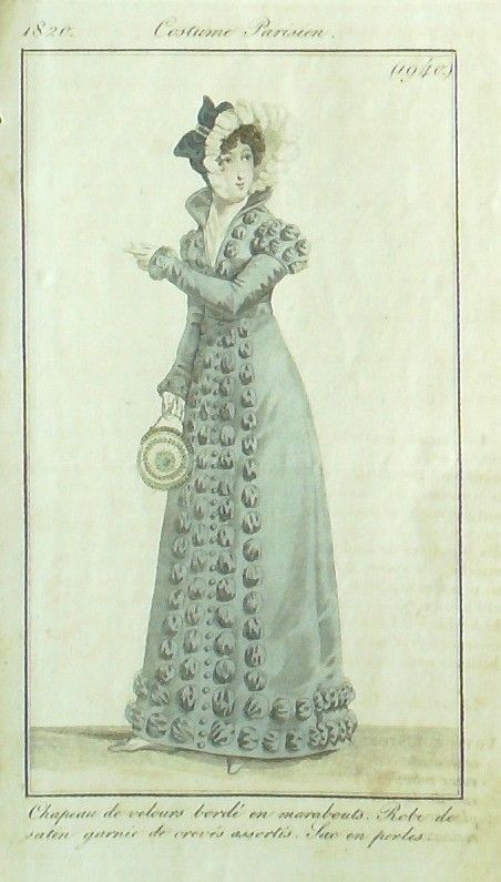 Gravure Mode Costume Parisien 1820 # 1940 (eau forte old Fashion plate