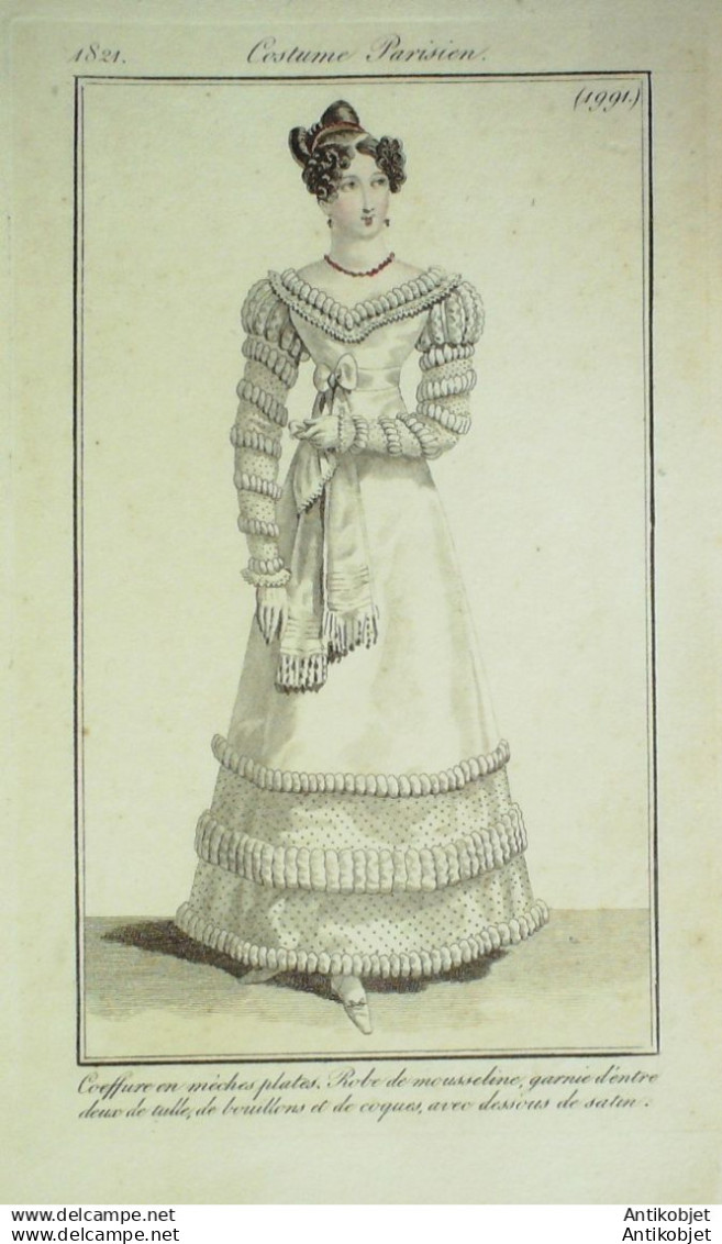 Gravure Mode Costume Parisien 1821 # 1991 (eau forte old Fashion plate