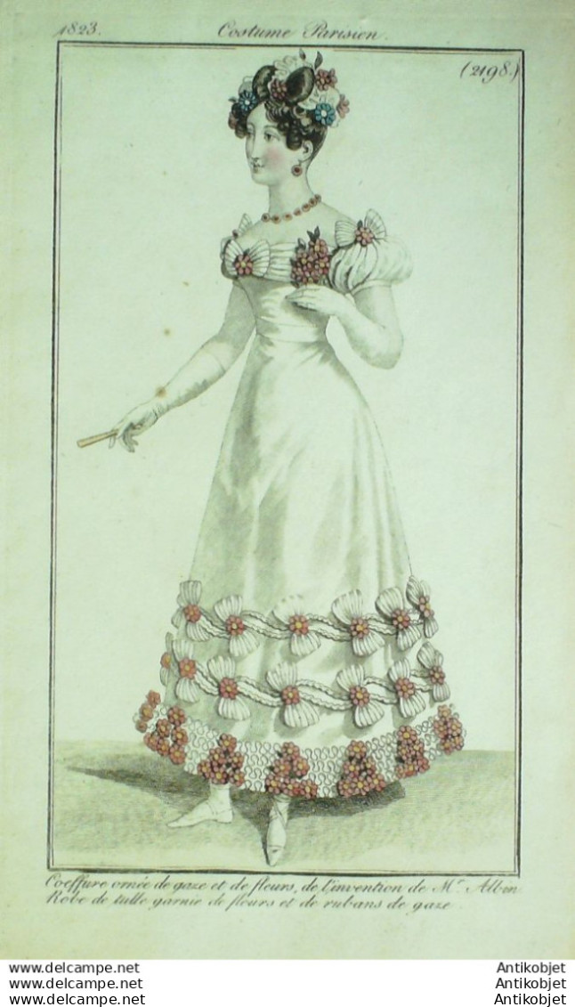 Gravure Mode Costume Parisien 1823 # 2198 (eau forte old Fashion plate