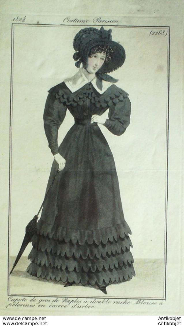 Gravure Mode Costume Parisien 1824 # 2268 (eau forte old Fashion plate