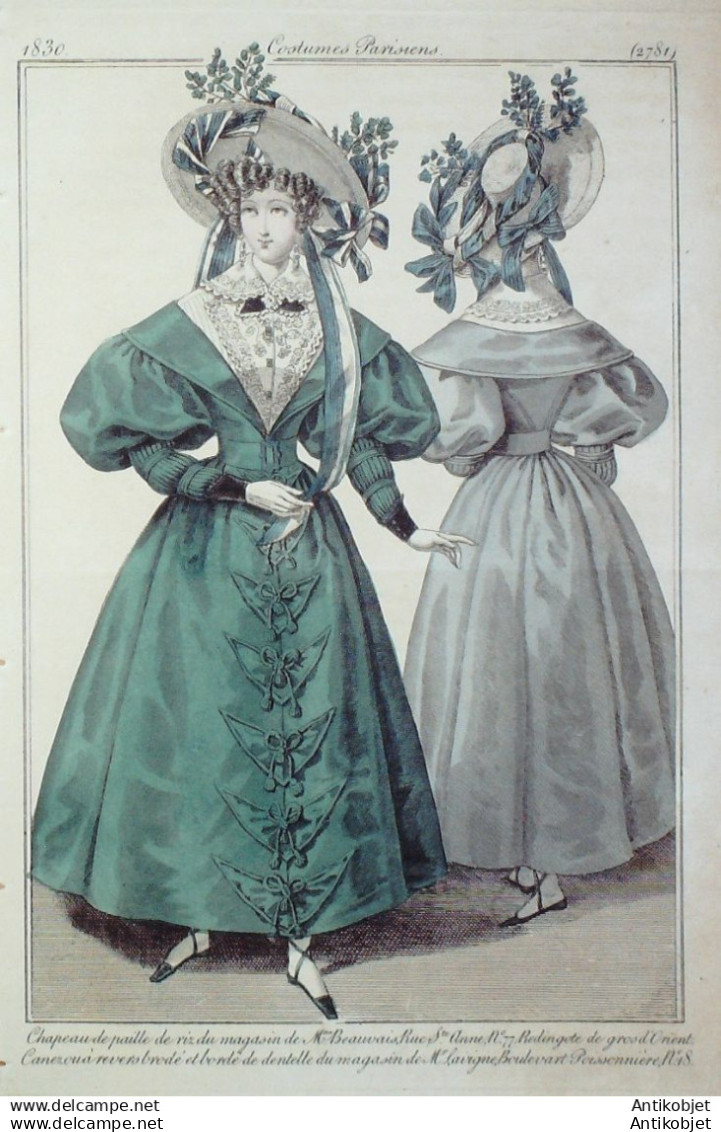 Gravure Mode Costume Parisien 1830 # 2781 (eau forte old Fashion plate