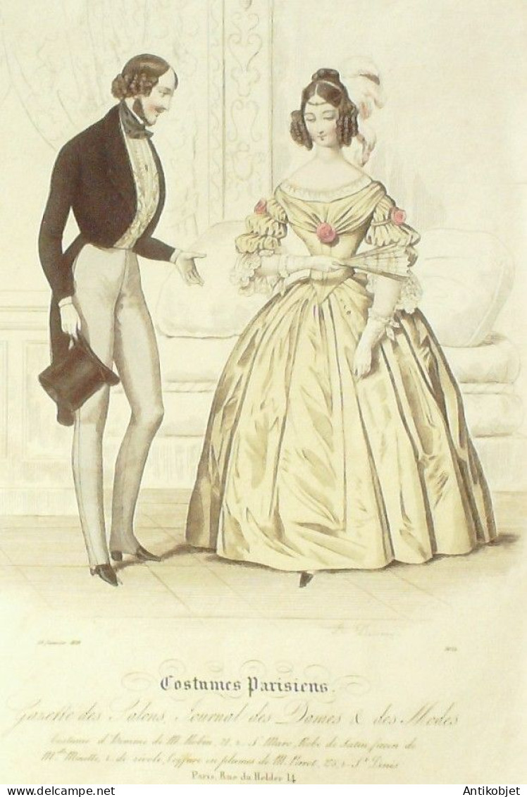 Gravure Mode Costume Parisien 1839 # 3824 (eau forte old Fashion plate