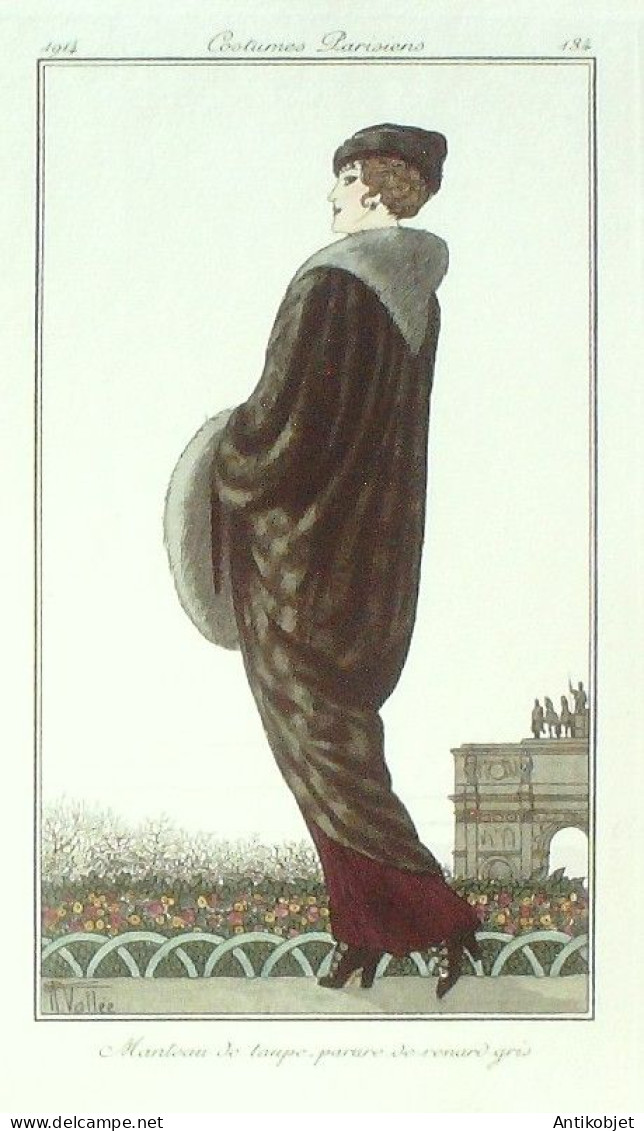 Gravure Mode Costume Parisien 1914 # 134 Vallee Armand (eau forte)