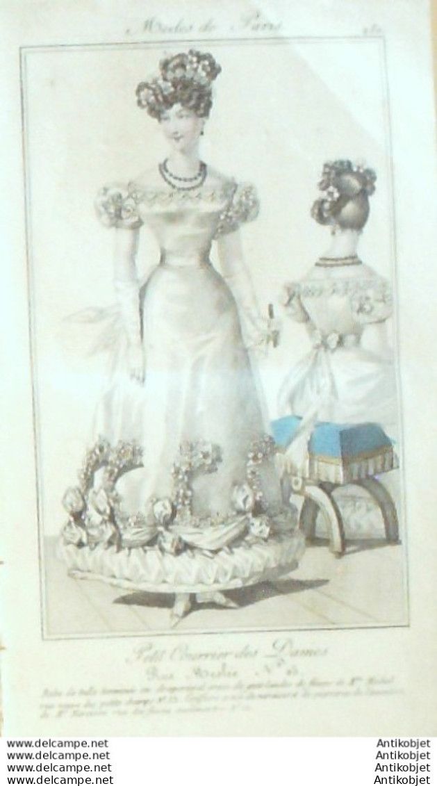 Gravure Mode Courrier des Dames 1825 # 280 (eau forte old Fashion plate)