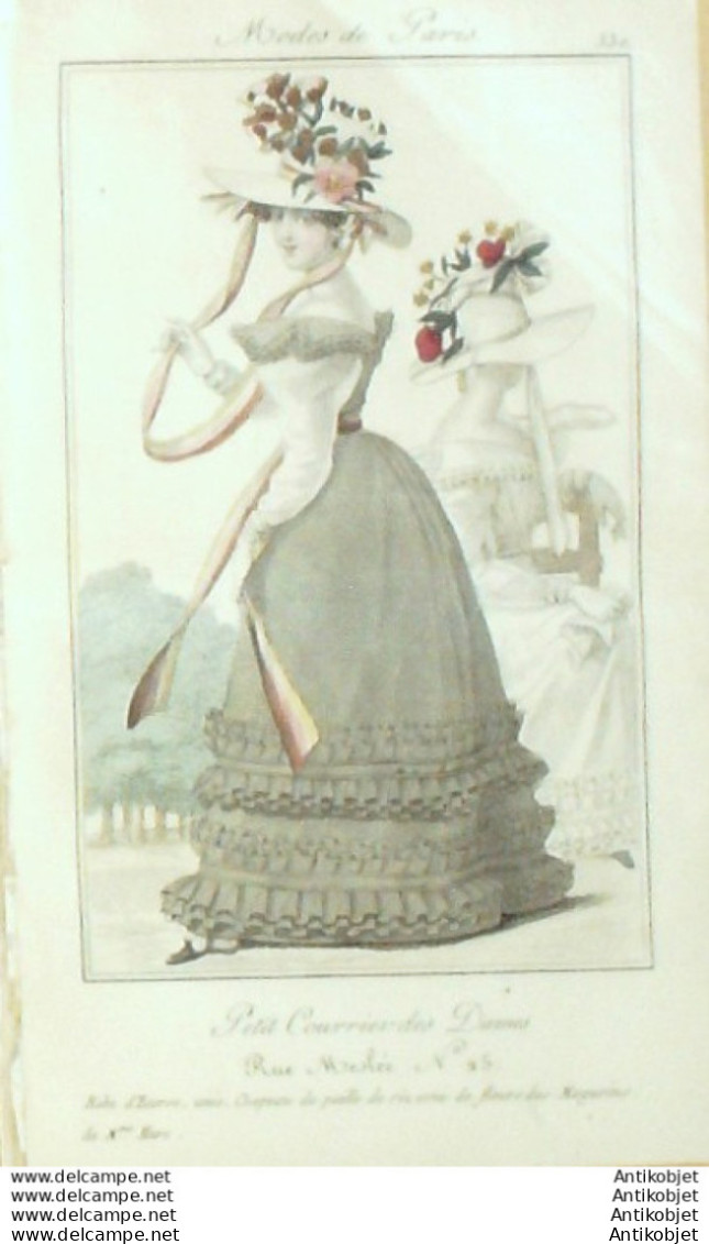 Gravure Mode Courrier des Dames 1825 # 330 (eau forte old Fashion plate)