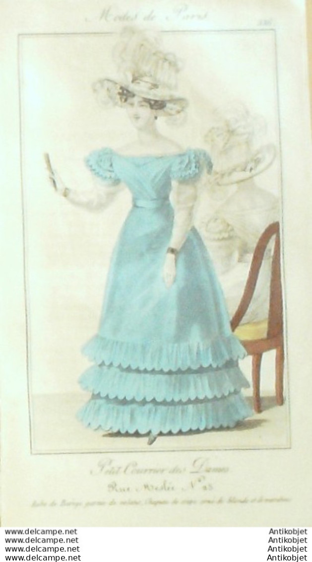 Gravure Mode Courrier des Dames 1825 # 336 (eau forte old Fashion plate)