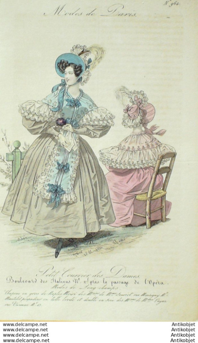 Gravure Mode Courrier des Dames 1832 # 964 (eau forte old Fashion plate)