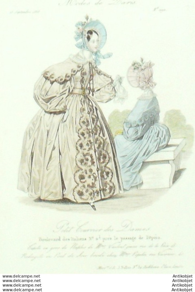 Gravure Mode Courrier des Dames 1835 # 1190 (eau forte old Fashion plate)