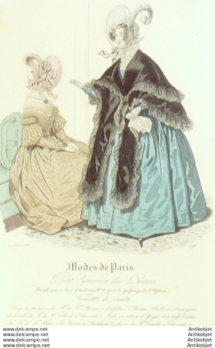 Gravure Mode Courrier des Dames 1836 # 1296 (eau forte old Fashion plate)