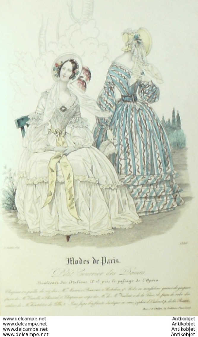Gravure Mode Courrier des Dames 1839 # 1556 (eau forte old Fashion plate)