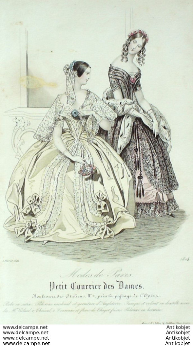 Gravure Mode Courrier des Dames 1842 # 1804 (eau forte old Fashion plate)