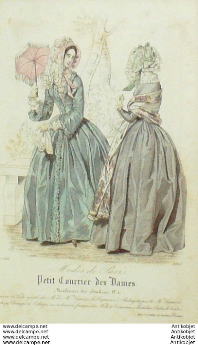 Gravure Mode Courrier des Dames 1844 # 2015 (eau forte old Fashion plate)