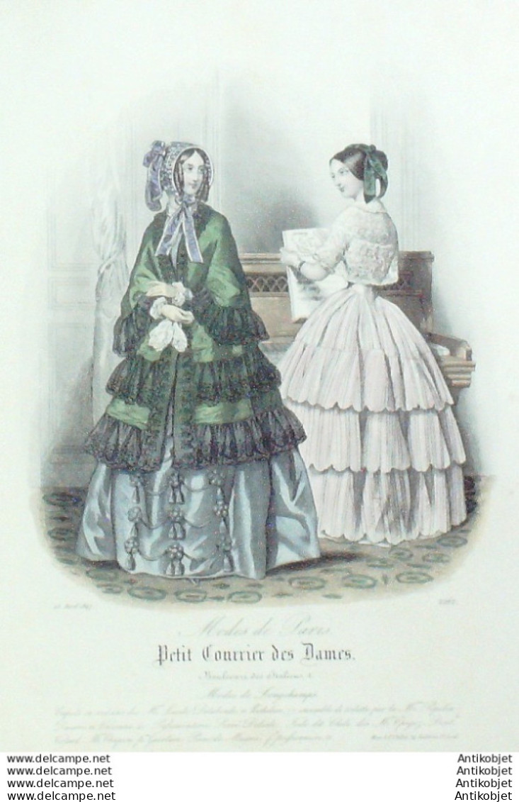 Gravure Mode Courrier des Dames 1847 # 2262 (eau forte old Fashion plate)