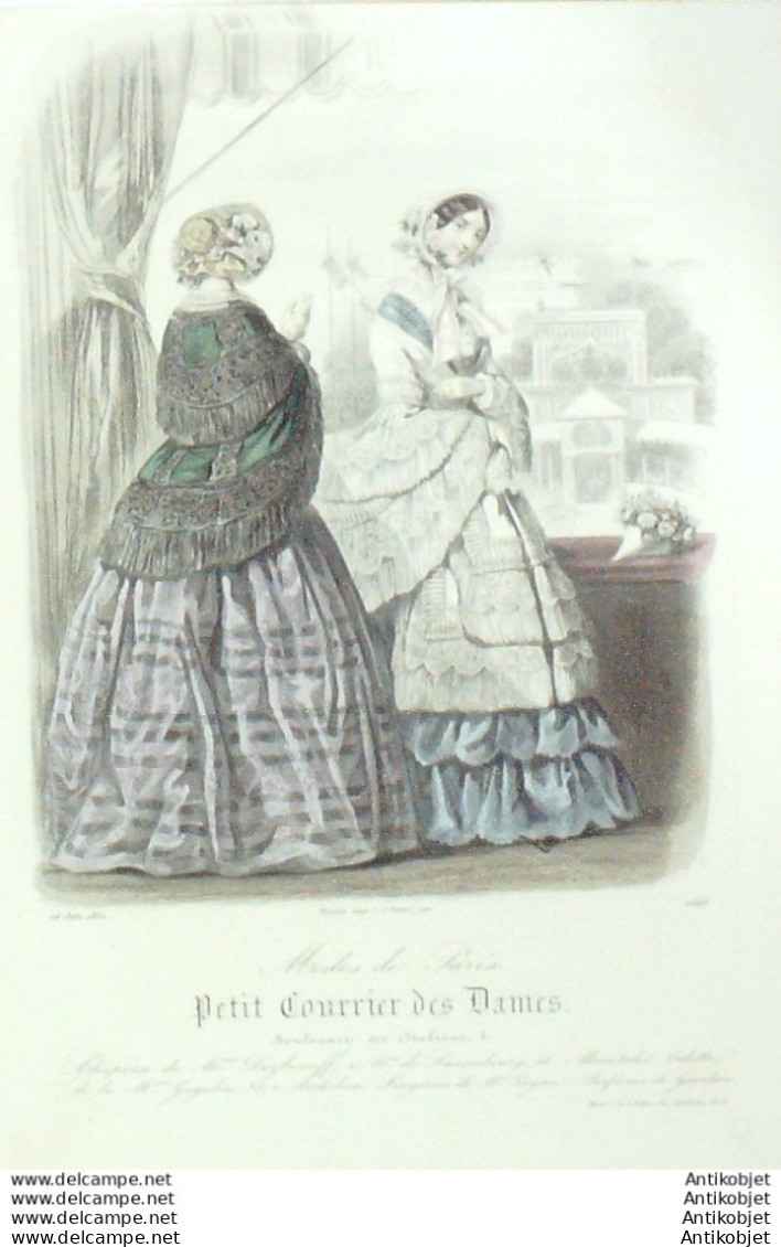 Gravure Mode Courrier des Dames 1852 # 2646 (eau forte old Fashion plate)