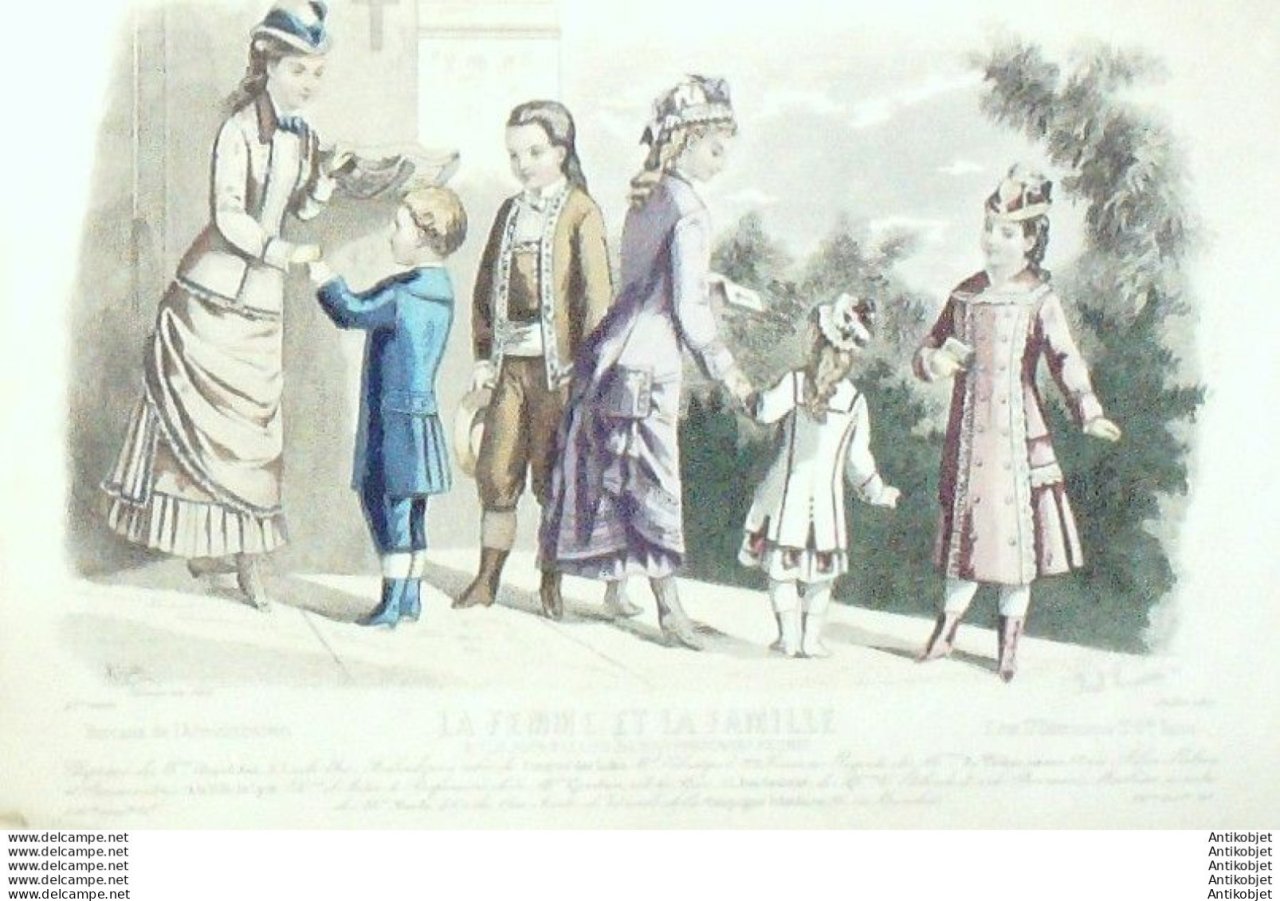 Gravure Mode La Femme & La Famille 1877 # 07 (Old Fashion plate)