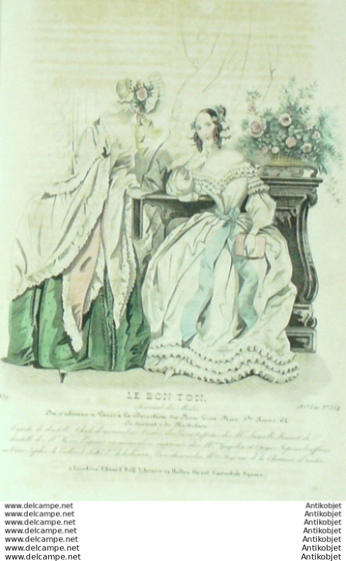 Gravure Mode Le Bon Ton 1839 # 354 (aquarelle old fashion plate)