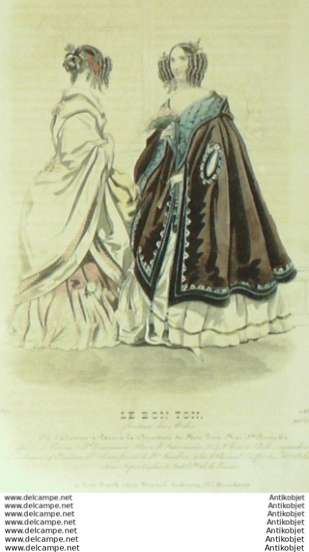 Gravure Mode Le Bon Ton 1840 # 461 (aquarelle old fashion plate)