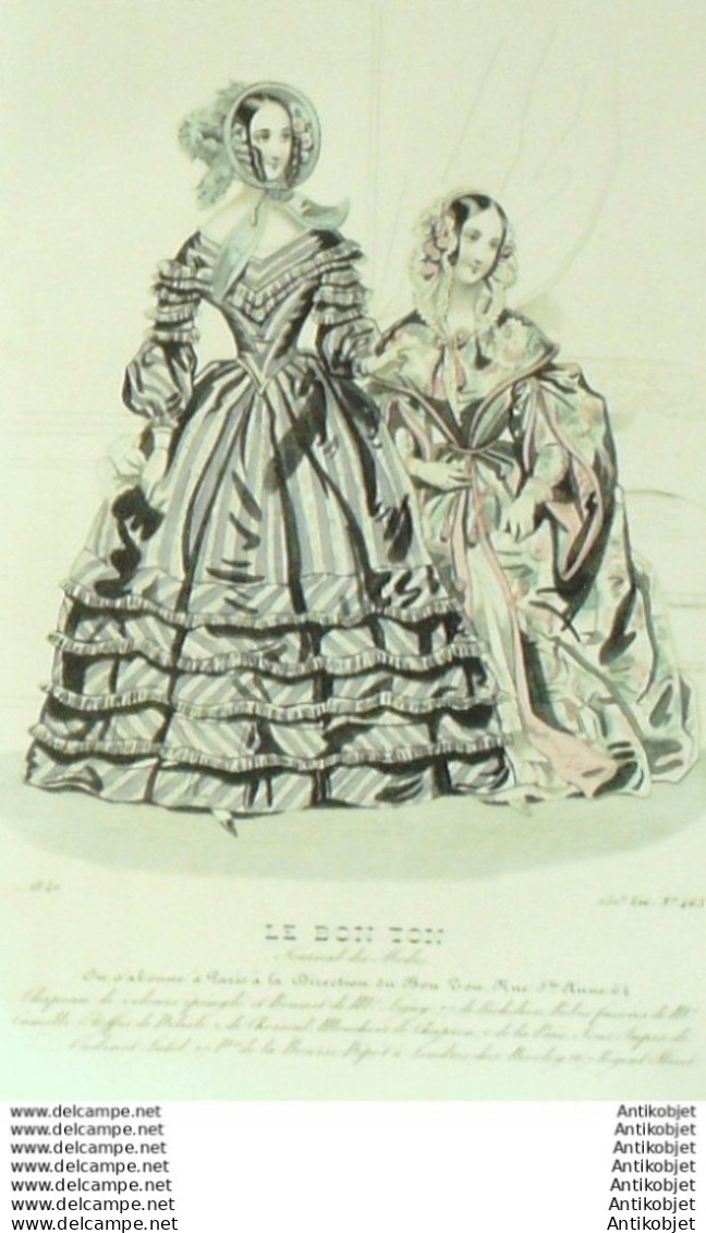 Gravure Mode Le Bon Ton 1840 # 465 (aquarelle old fashion plate)