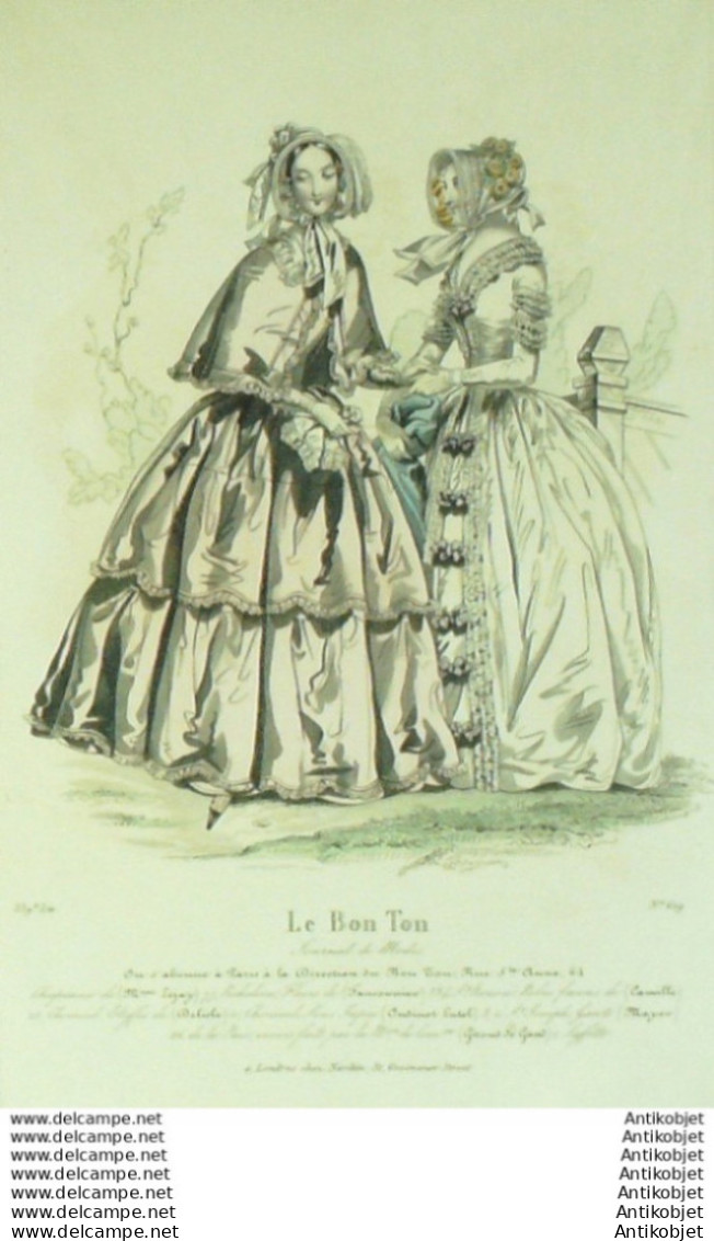 Gravure Mode Le Bon Ton 1841 # 619 (aquarelle old fashion plate)