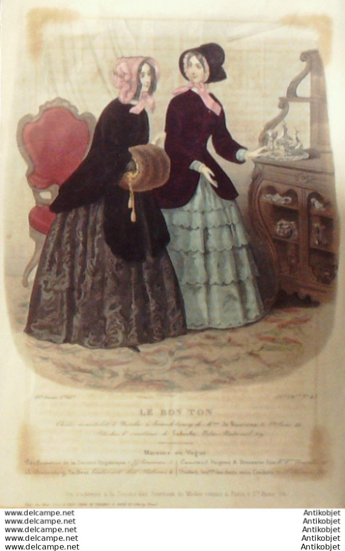 Gravure Mode Le Bon Ton 1848 14 # 45 (aquarelle old fashion plate)