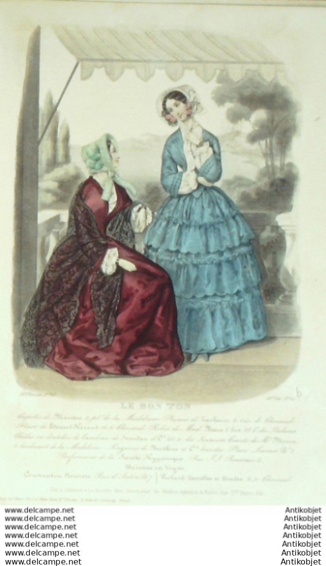 Gravure Mode Le Bon Ton 1849 16 # 21 (aquarelle old fashion plate)