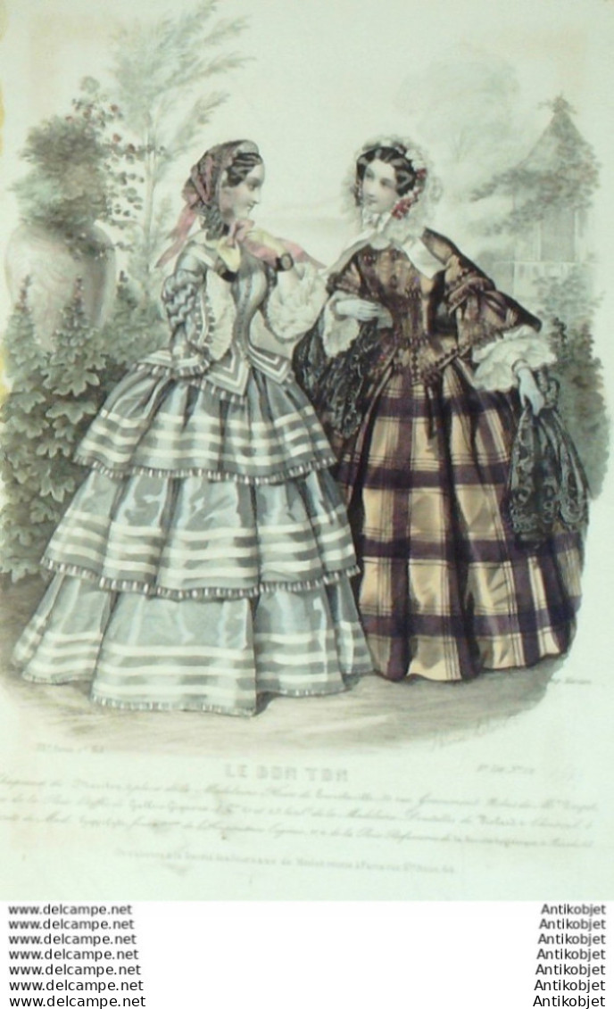 Gravure Mode Le Bon Ton 1853 20 # 12 (aquarelle old fashion plate)