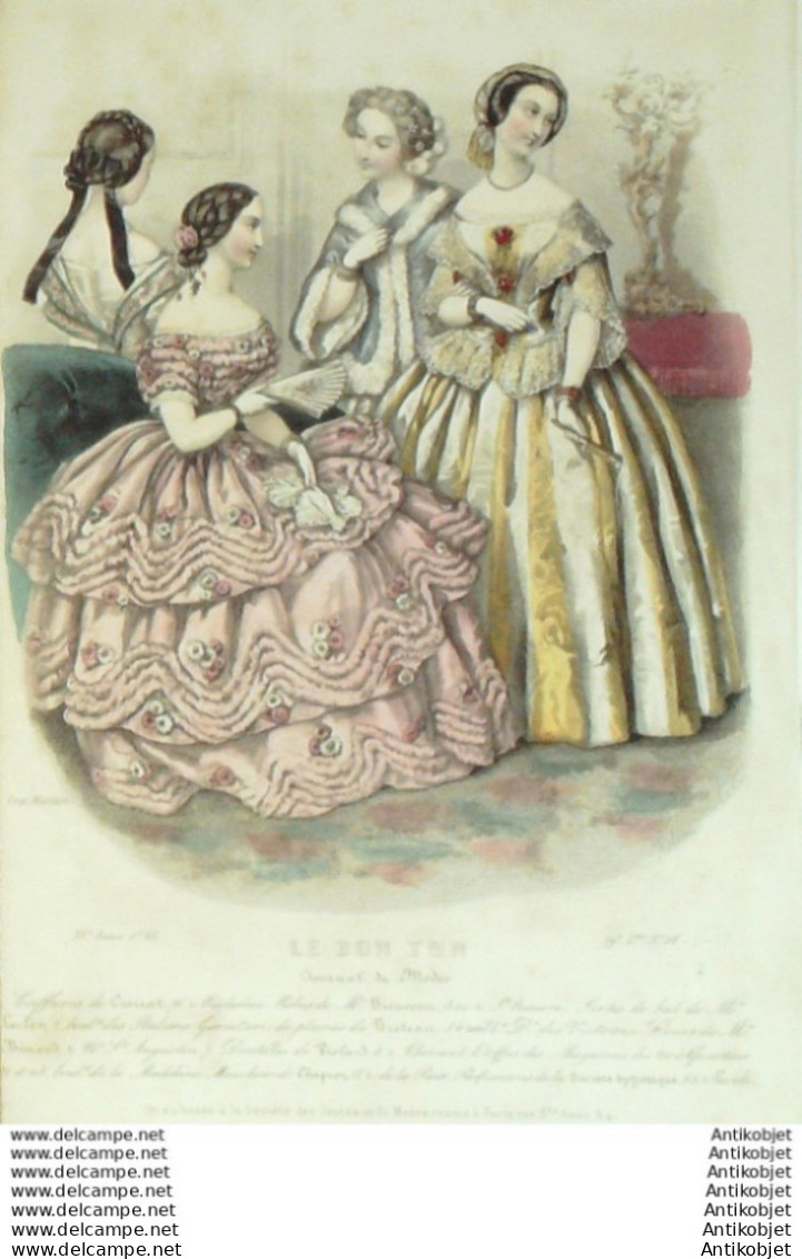 Gravure Mode Le Bon Ton 1853 20 # 28 (aquarelle old fashion plate)