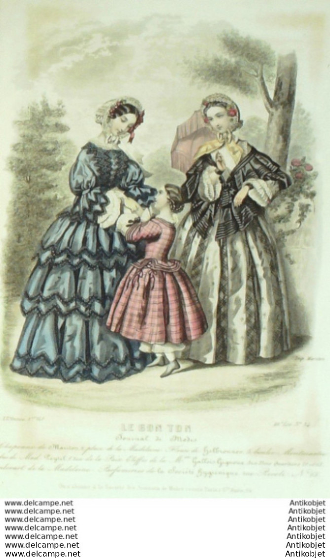 Gravure Mode Le Bon Ton 1853 20 # 34 (aquarelle old fashion plate)