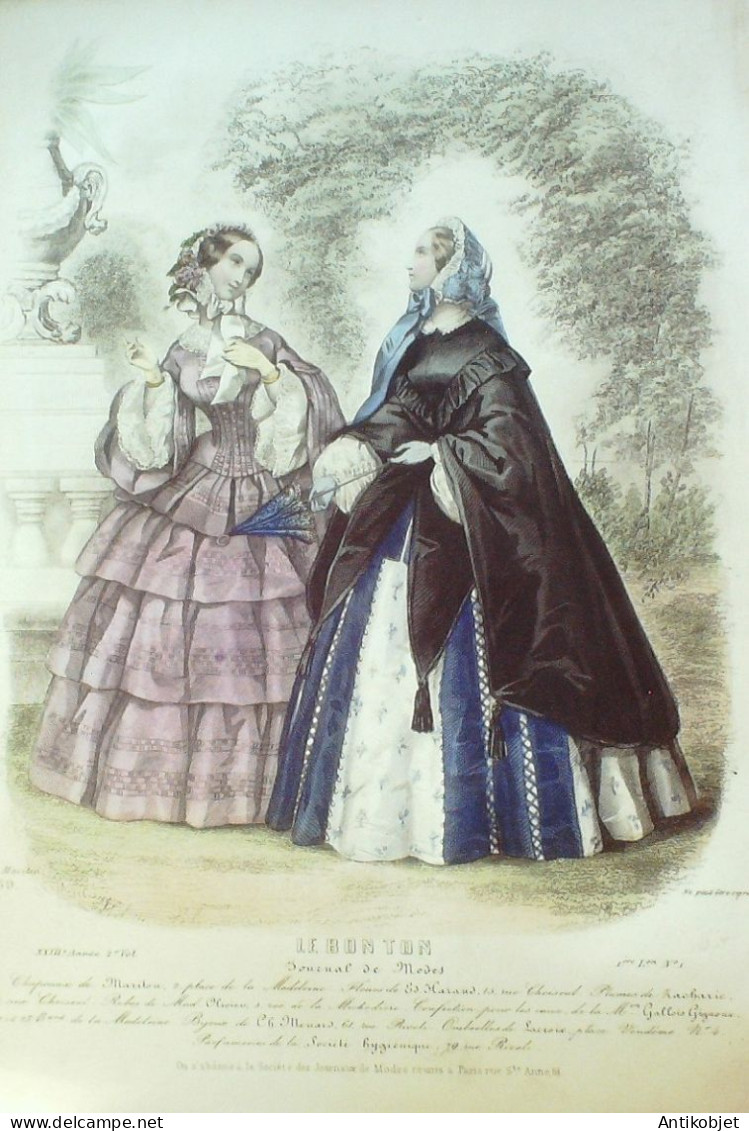 Gravure Mode Le Bon Ton 1857 23 # 1b (aquarelle old fashion plate)