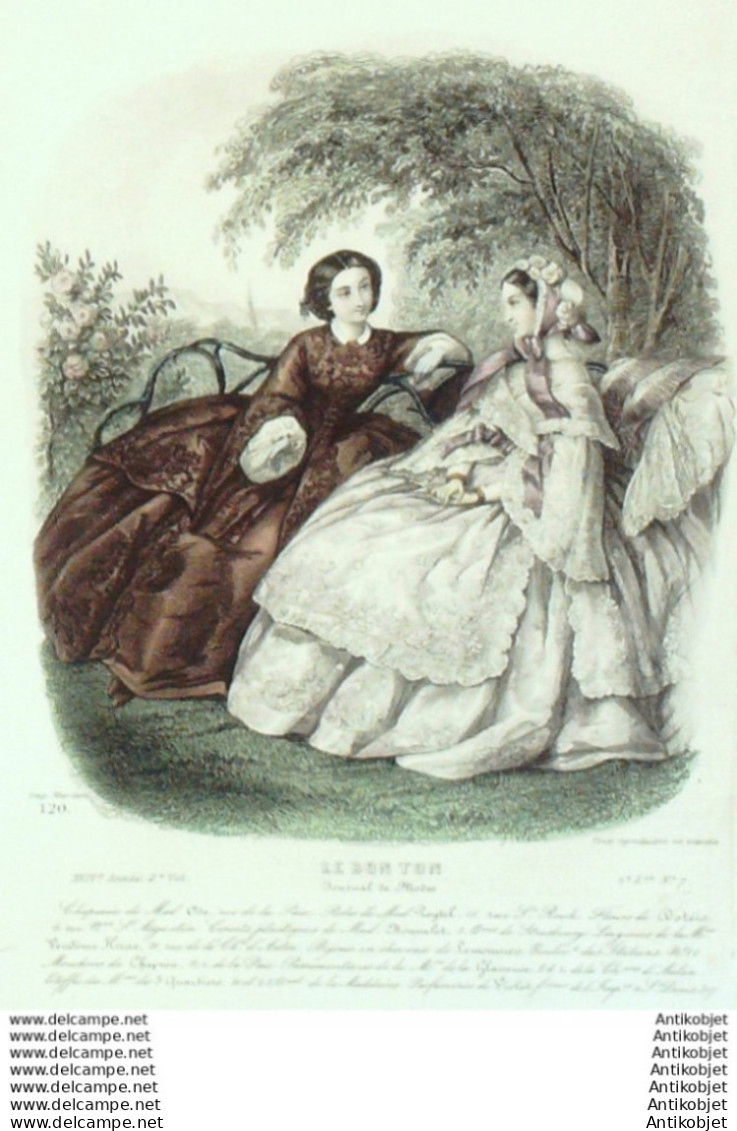 Gravure Mode Le Bon Ton 1857 24 # 7 (aquarelle old fashion plate)