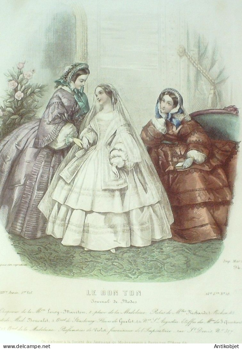 Gravure Mode Le Bon Ton 1858 24 # 18 (aquarelle old fashion plate)