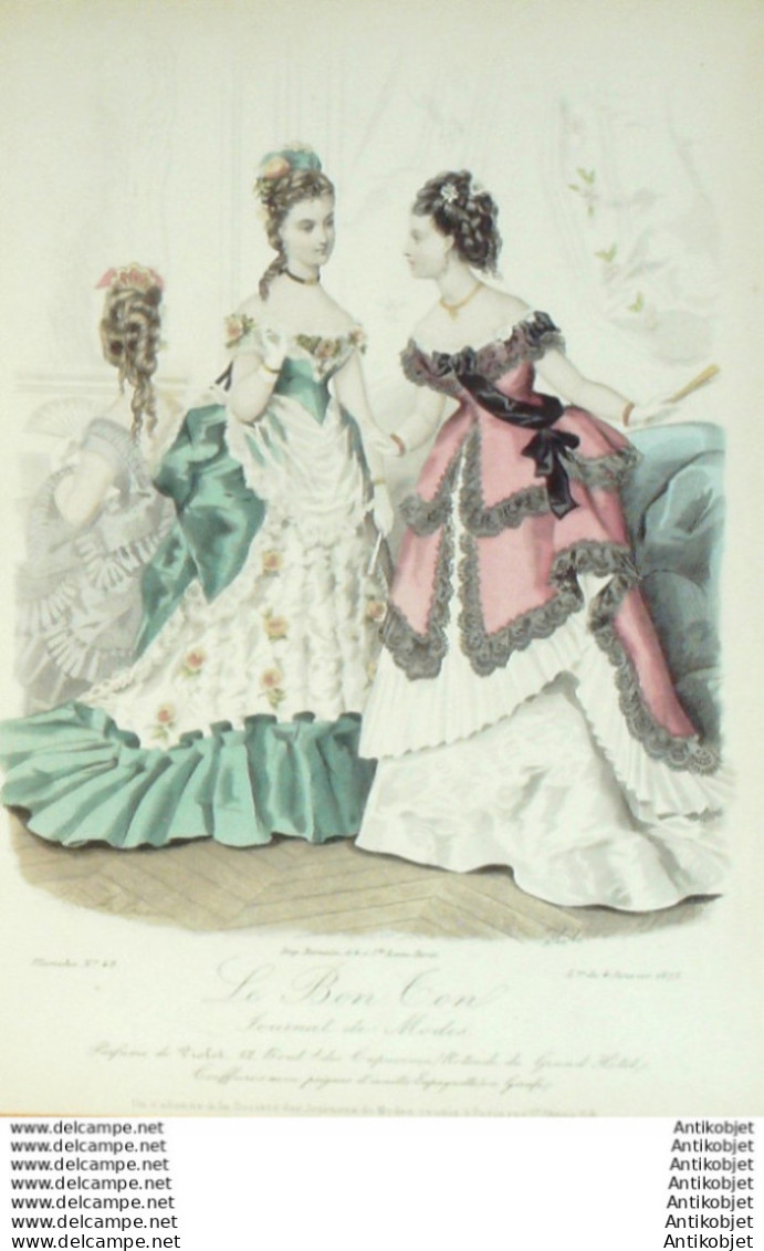 Gravure Mode Le Bon Ton 1872 # 48 (aquarelle old fashion plate)