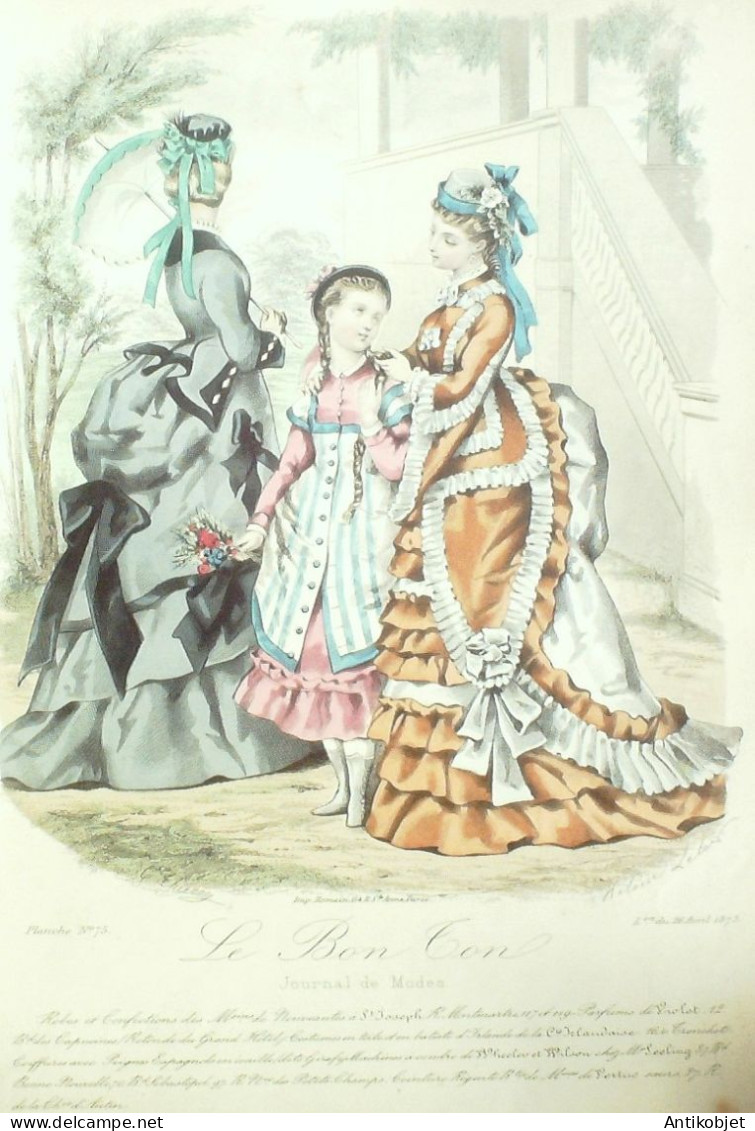Gravure Mode Le Bon Ton 1873 # 75 (aquarelle old fashion plate)