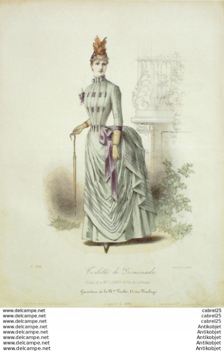 Gravure Mode Le Coquet 1886 # 12 (Old Fashion plate)