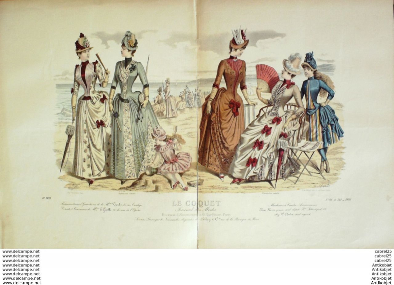 Gravure Mode Le Coquet 1886 # 26 (Old Fashion plate) Maritime