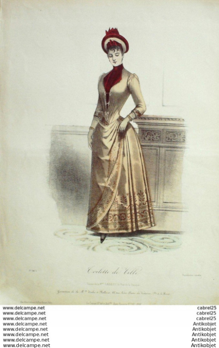 Gravure Mode Le Coquet 1888 # 46 (Old Fashion plate)