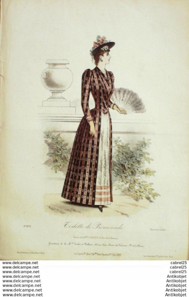 Gravure Mode Le Coquet 1889 # 19 (Old Fashion plate)