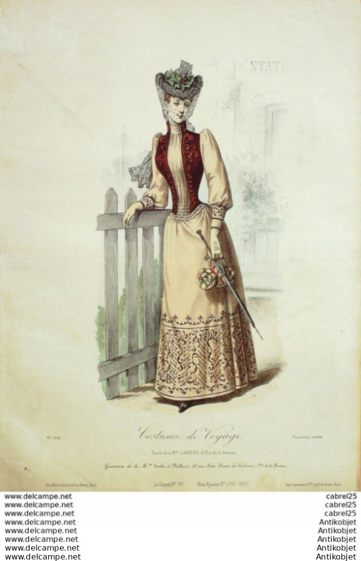 Gravure Mode Le Coquet 1889 # 30 (Old Fashion plate)